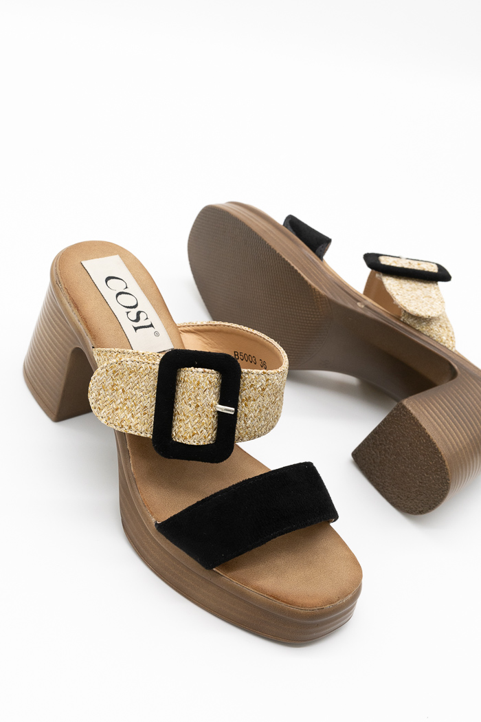 Αρχική σελίδα Shop Γυναικεία Παπούτσια Πέδιλα Πέδιλα mules (super soft) με φάσα τύπου ψάθα και suede B5003-Μαύρο