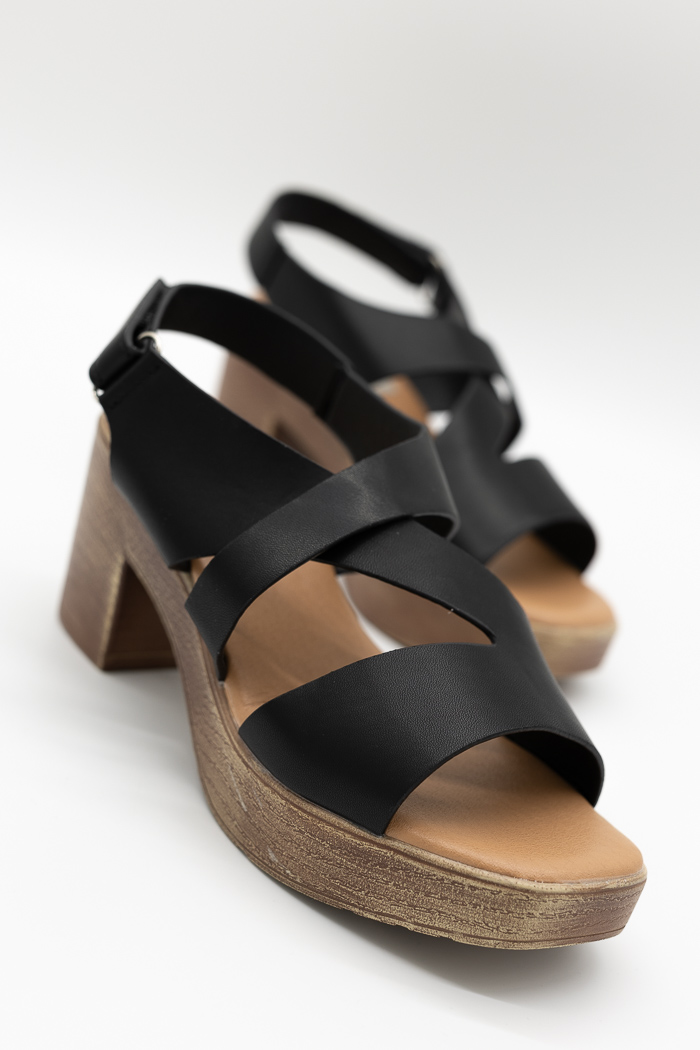 Πέδιλα (super soft) με αυτοκόλλητο κούμπωμα και λουράκια χιαστί 800-7 Μαύρο