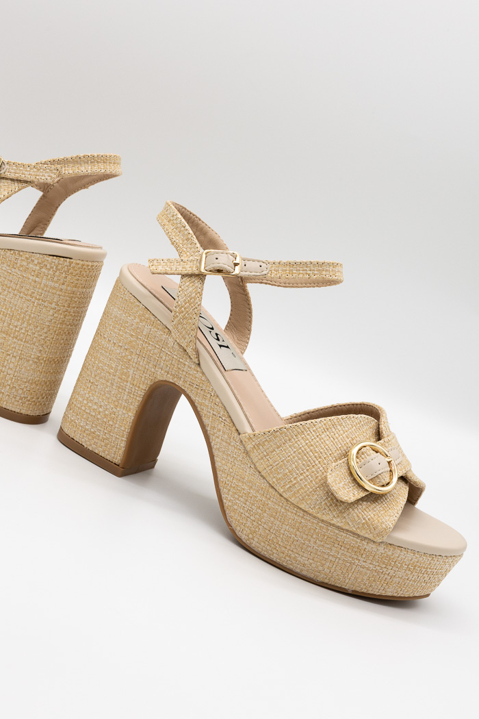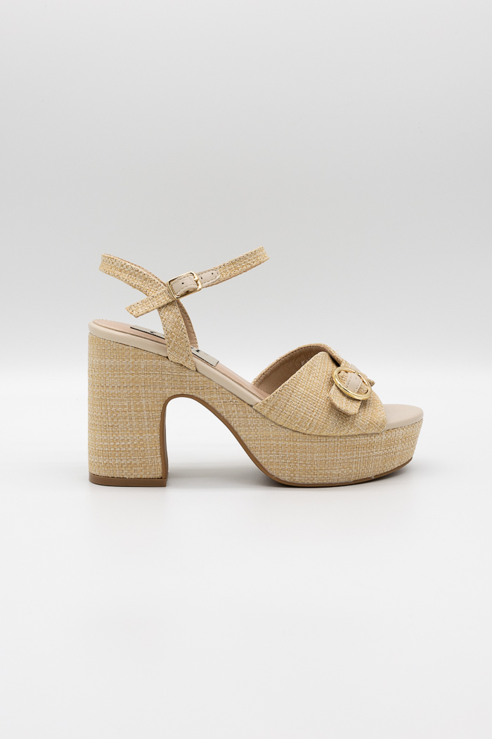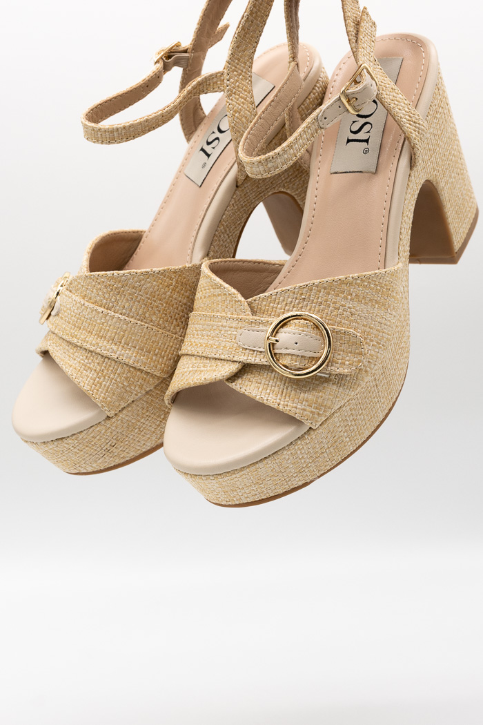 Πέδιλα τύπου ψάθα με ρυθμιζόμενο λουράκι στη φάσα MS19130-Μπεζ