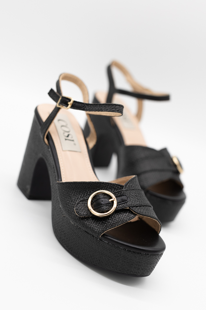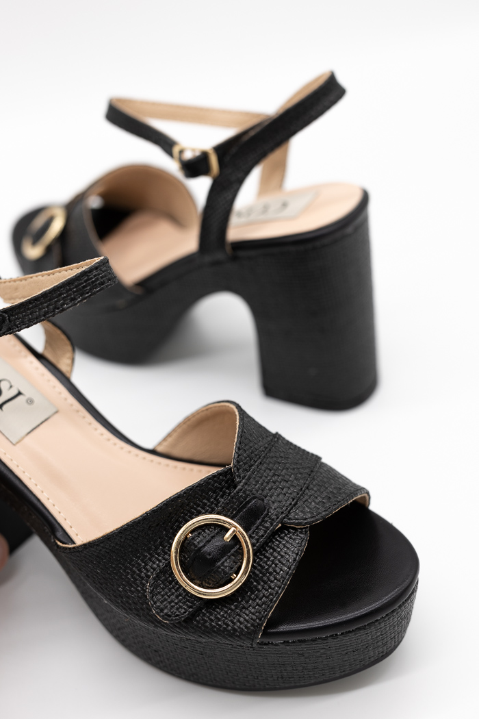 Πέδιλα τύπου ψάθα με ρυθμιζόμενο λουράκι στη φάσα MS19130-Μαύρο
