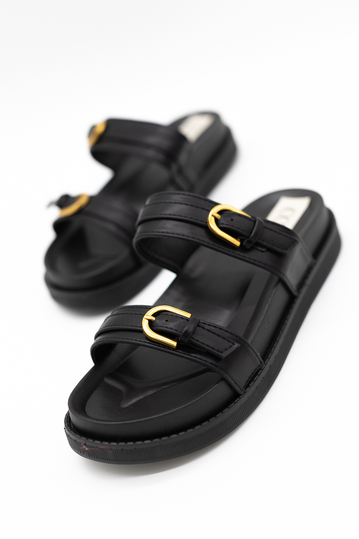 Αρχική σελίδα Shop Γυναικεία Παπούτσια Πλατφόρμες Flatforms σανδάλια με διπλά λουράκια και αγκράφες MS1015-Μαύρο