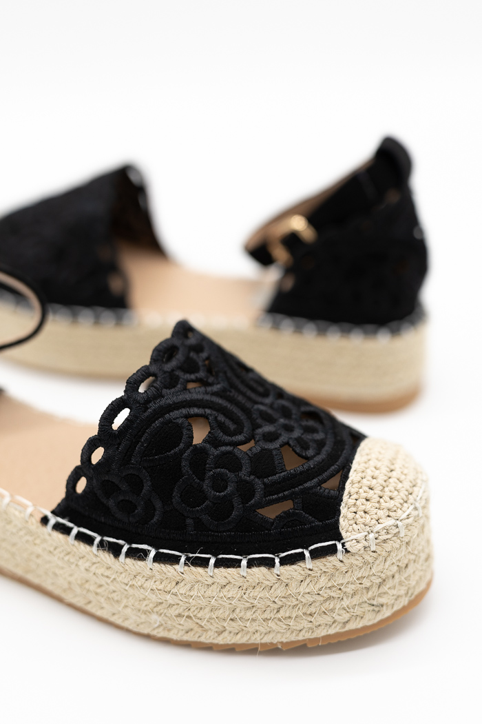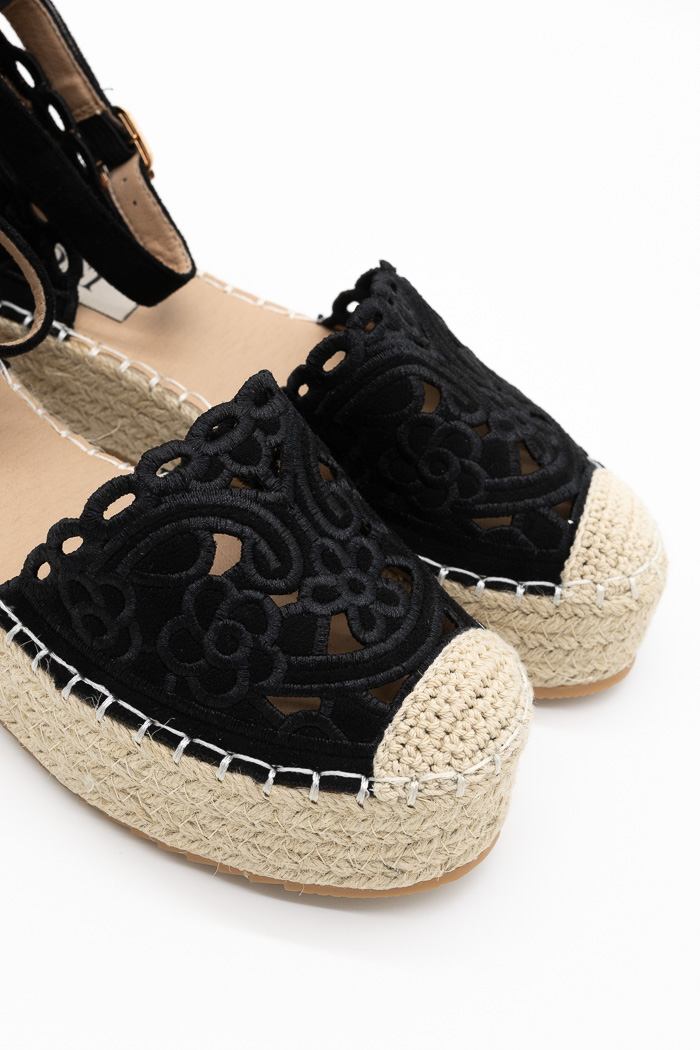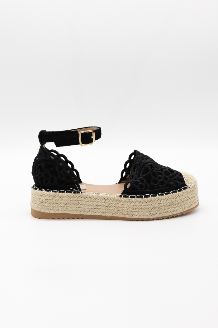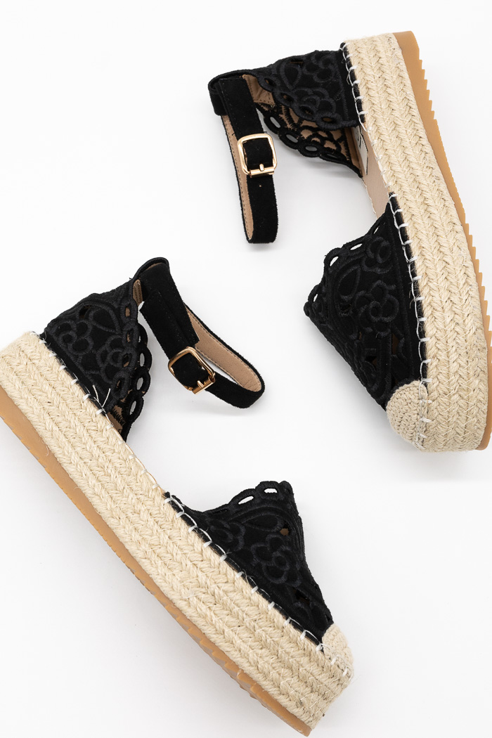 • Πλατφόρμες εσπαντρίγιες με δαντέλα και λουράκι E5565 Μαύρο