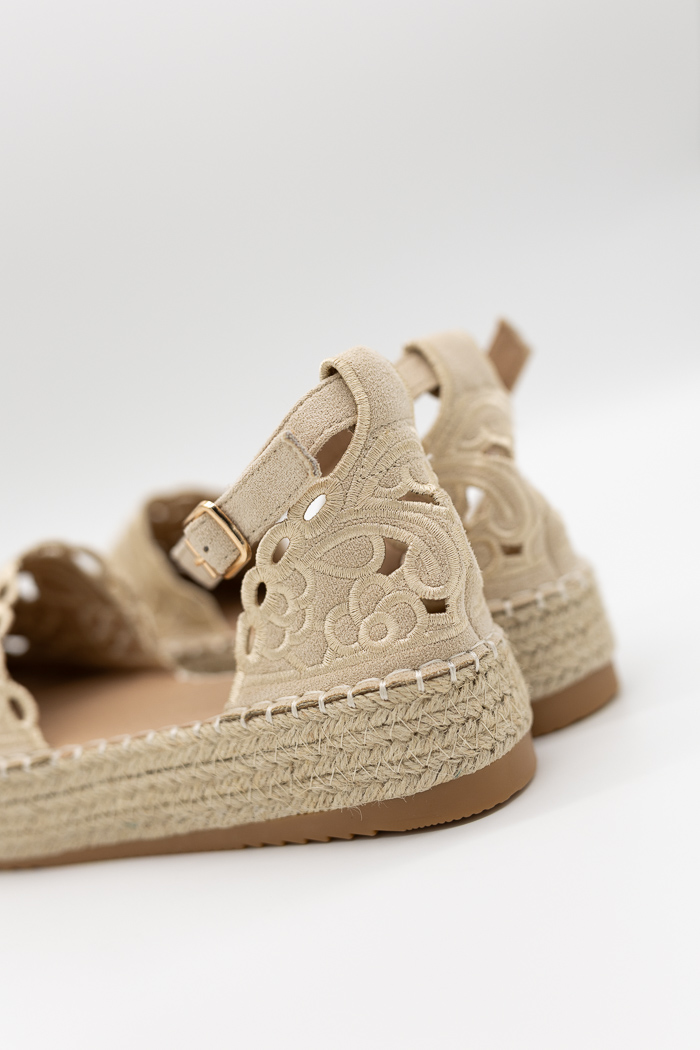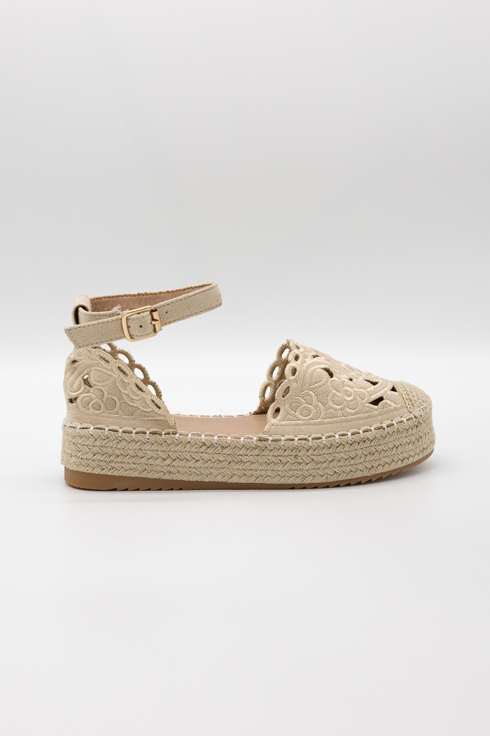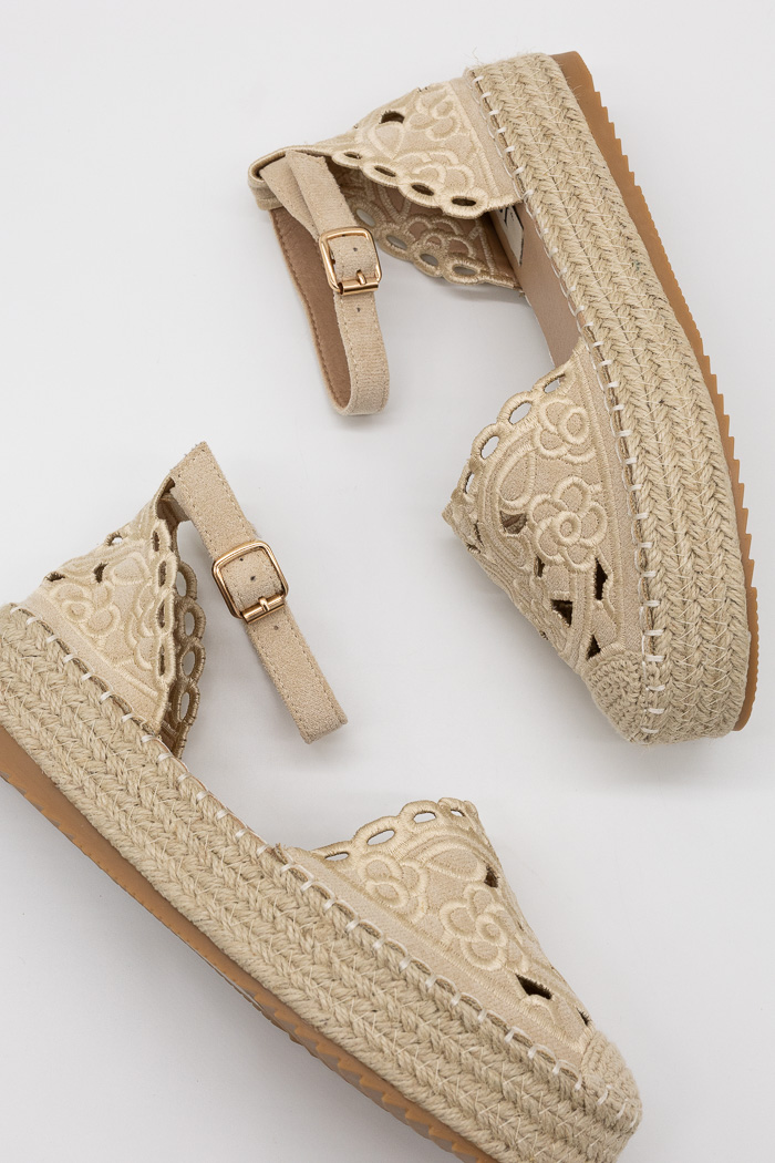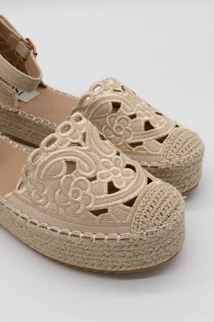 Πλατφόρμες εσπαντρίγιες με δαντέλα και λουράκι E5565 Μπεζ