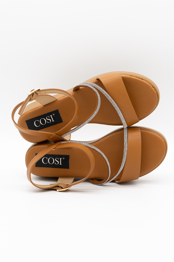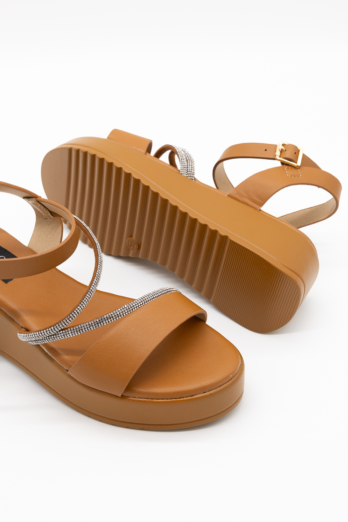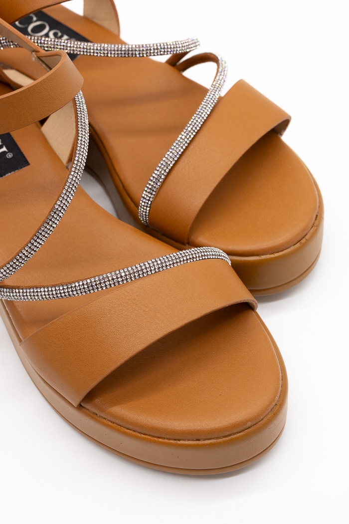 Πλατφόρμες με λουράκια strass L931-Κάμελ