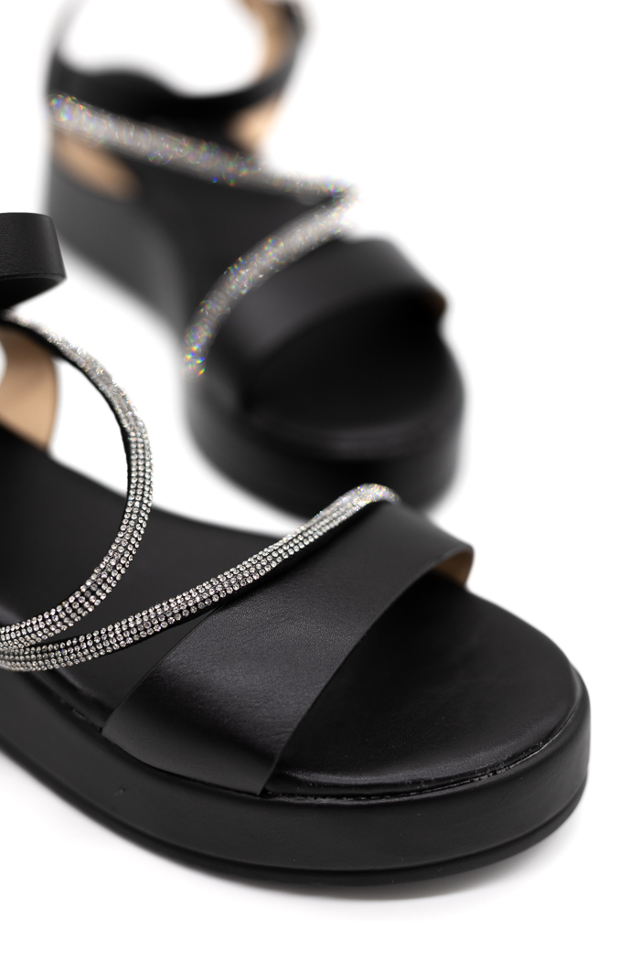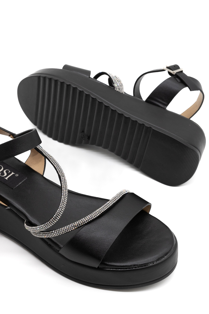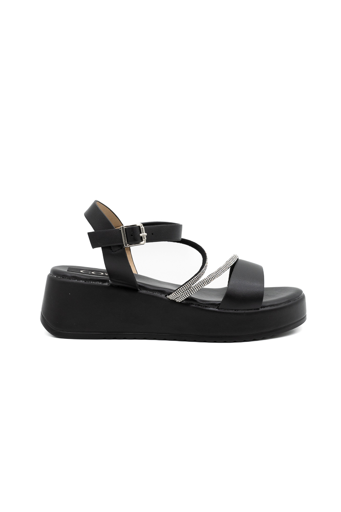 Πλατφόρμες με λουράκια strass L931-Μαύρο