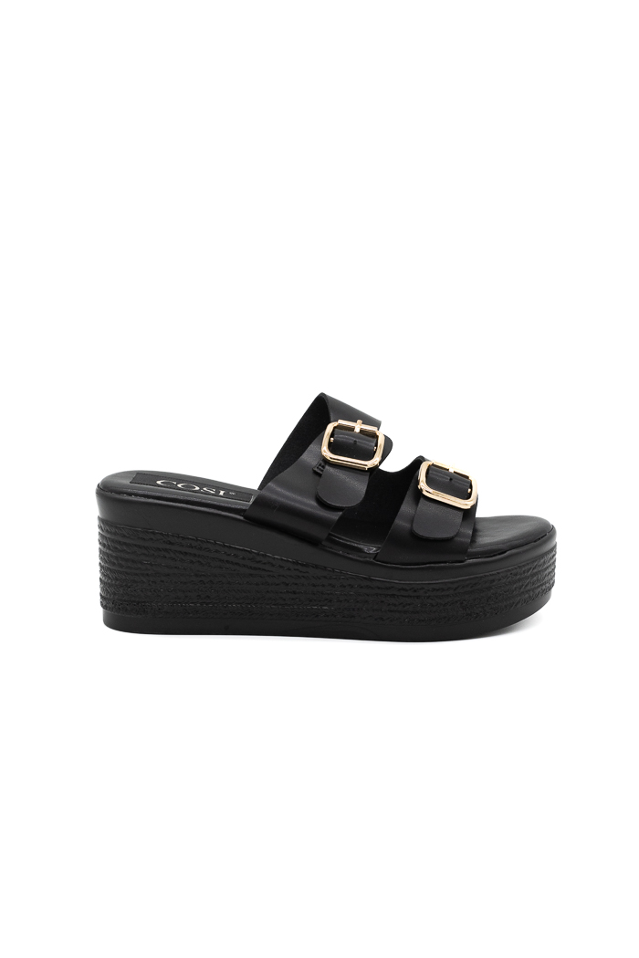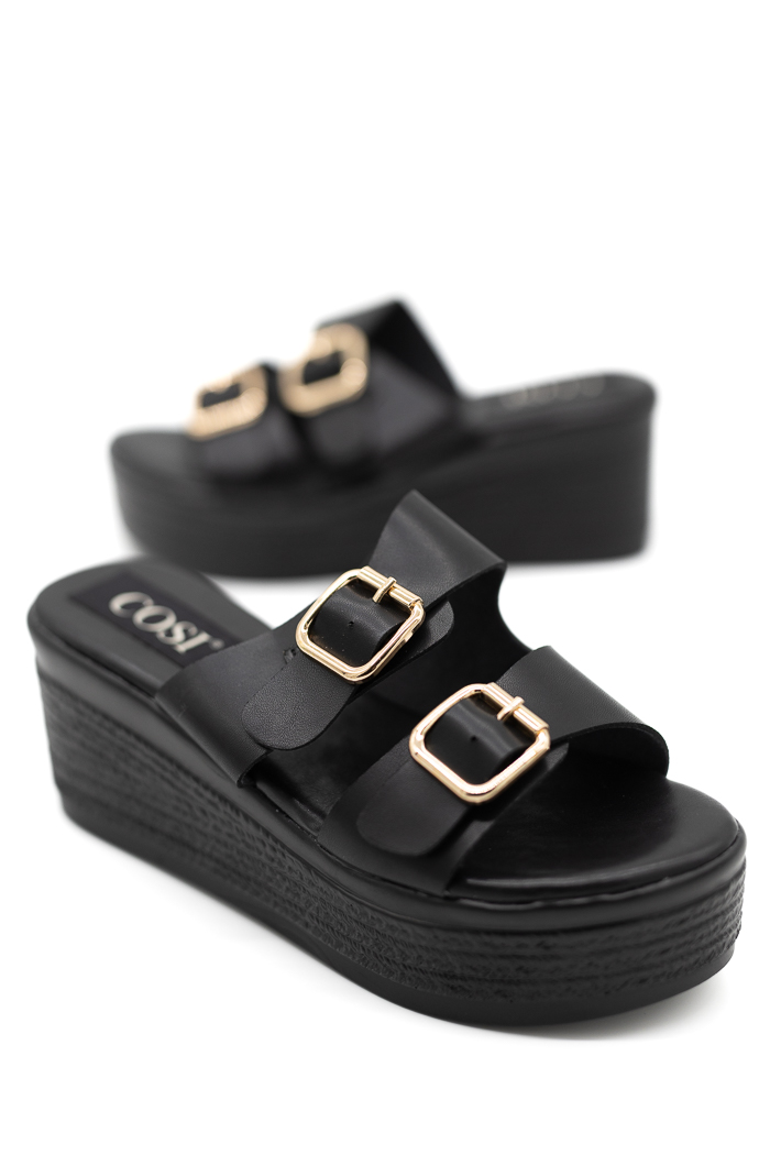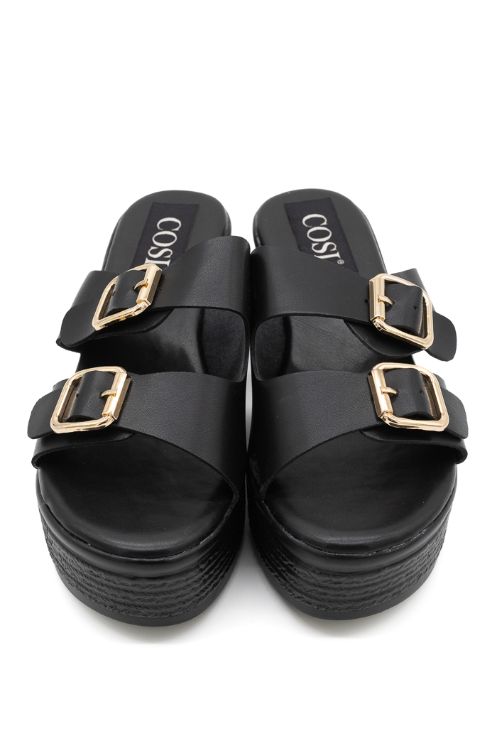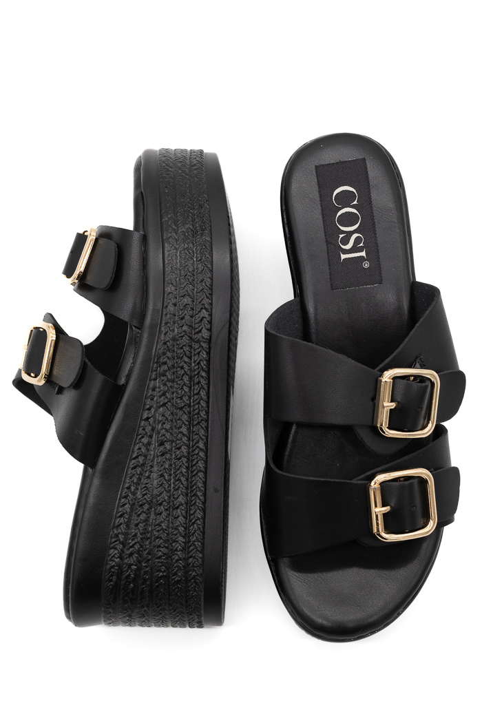 Πλατφόρμες mules με δυο λουράκια 55-315 Μαύρο
