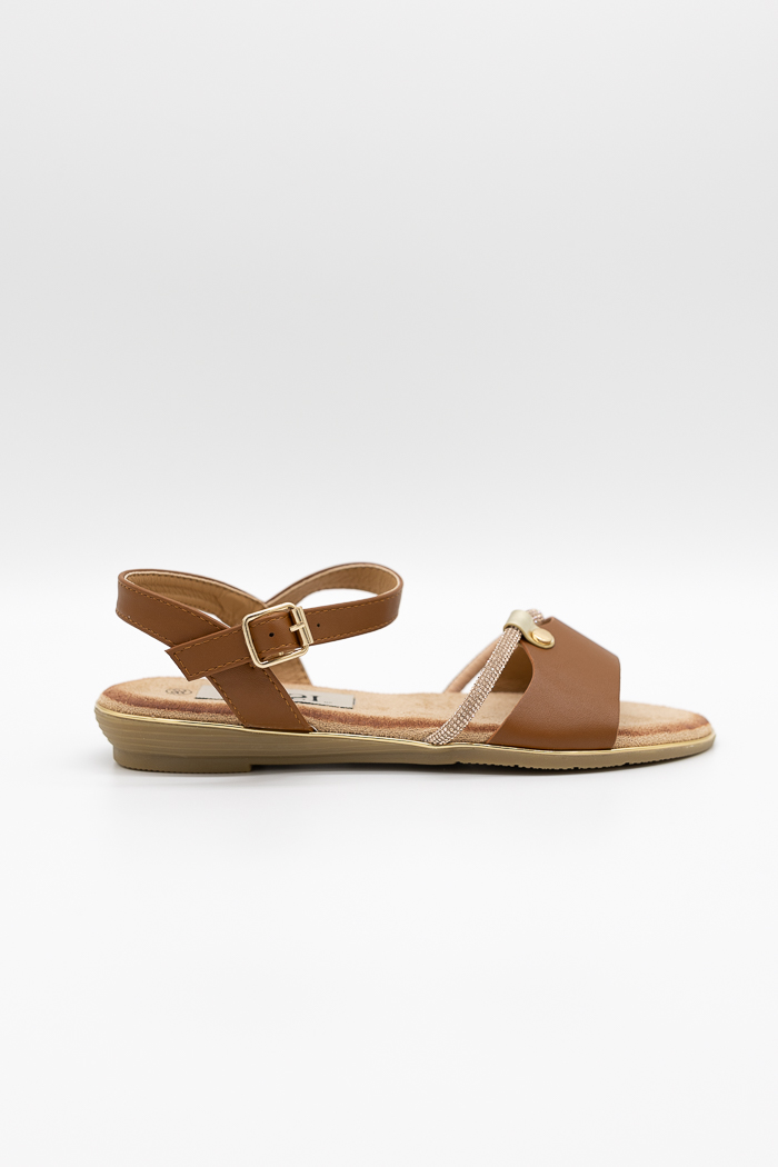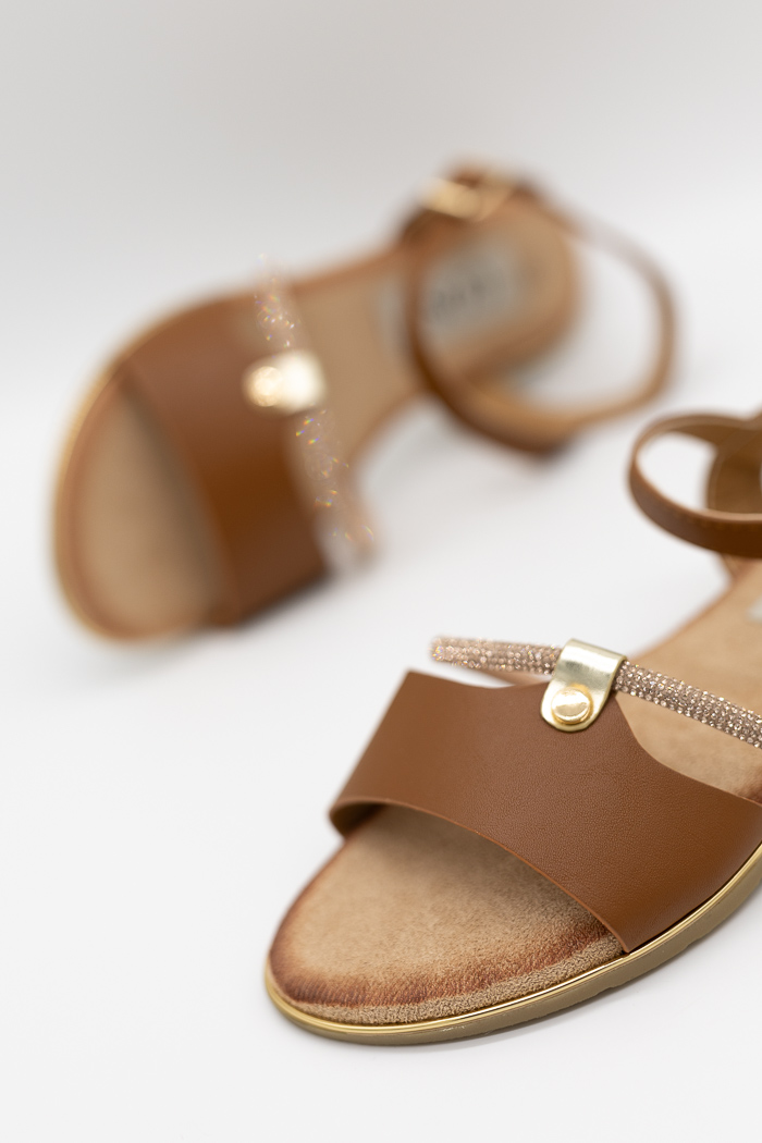 Σανδάλια με διακοσμητική λεπτόμερεια στο τακούνι 60356-Κάμελ