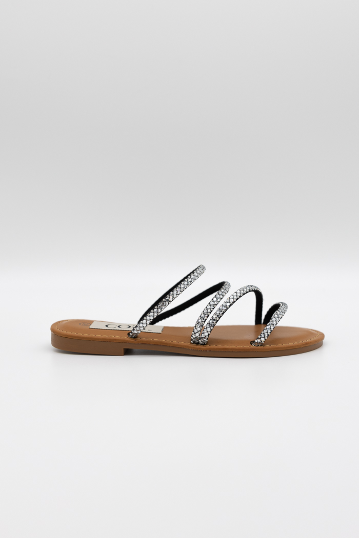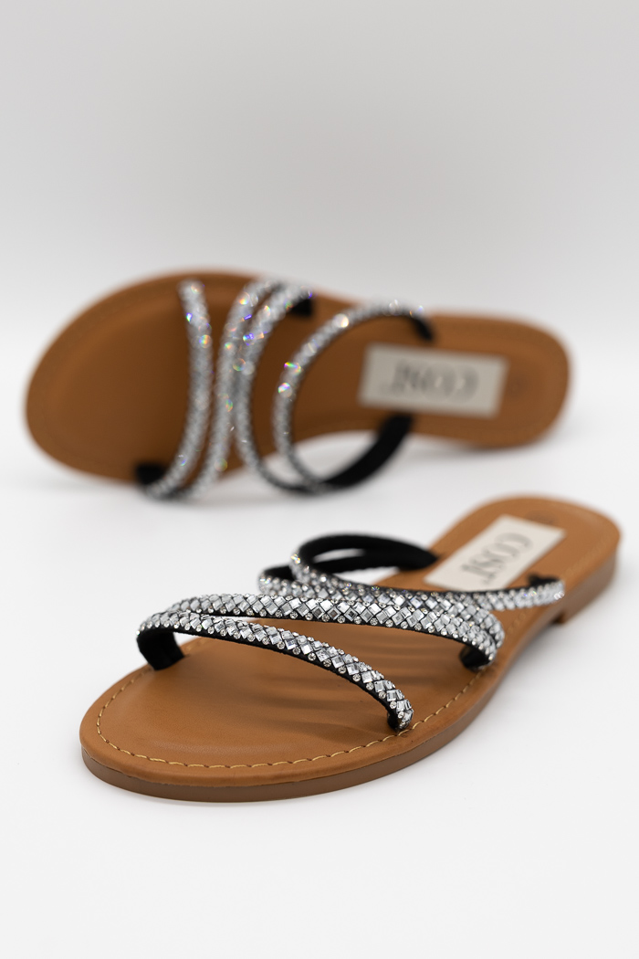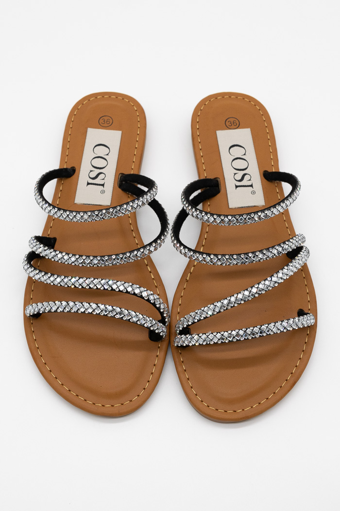 Σανδάλια με κομψά λουράκια διακοσμημένα με strass, που χαρίζουν λάμψη και θηλυκότητα σε κάθε σας βήμα. Άνετη εφαρμογή με μαλακό πάτο για καθημερινές ή βραδινές εμφανίσεις.