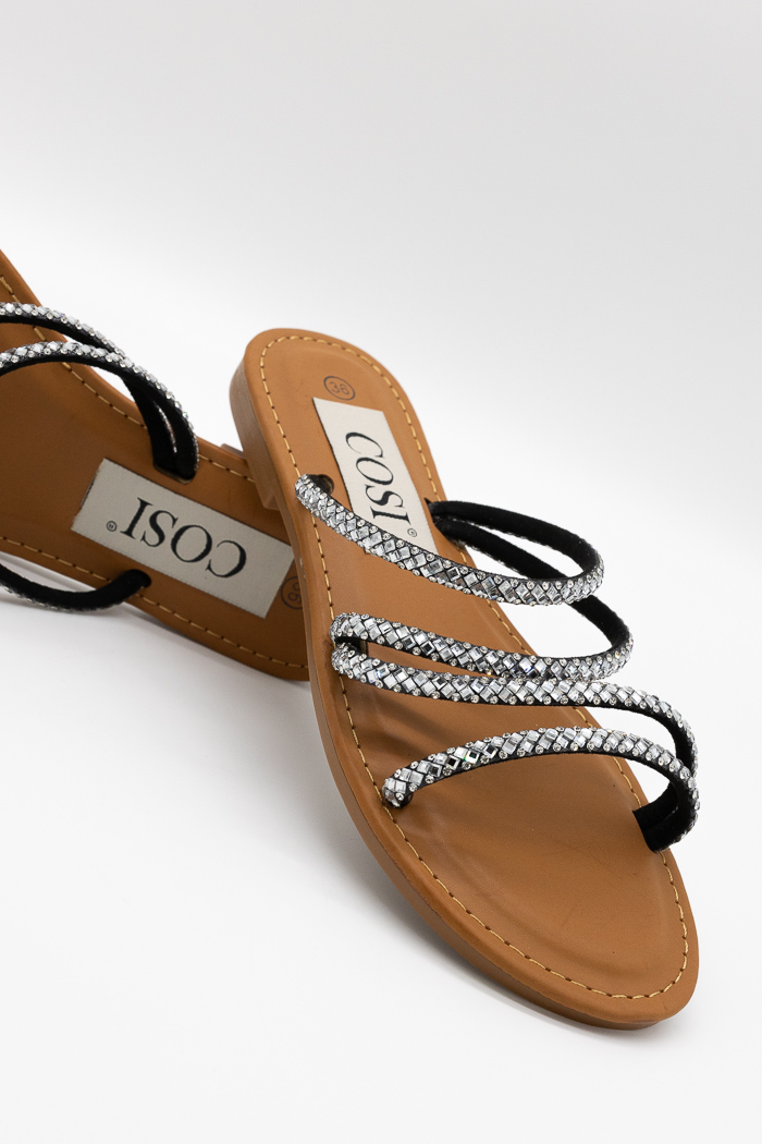 • Σανδάλια με λουράκια από strass Τ6-002 Μαύρο