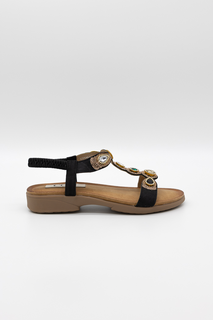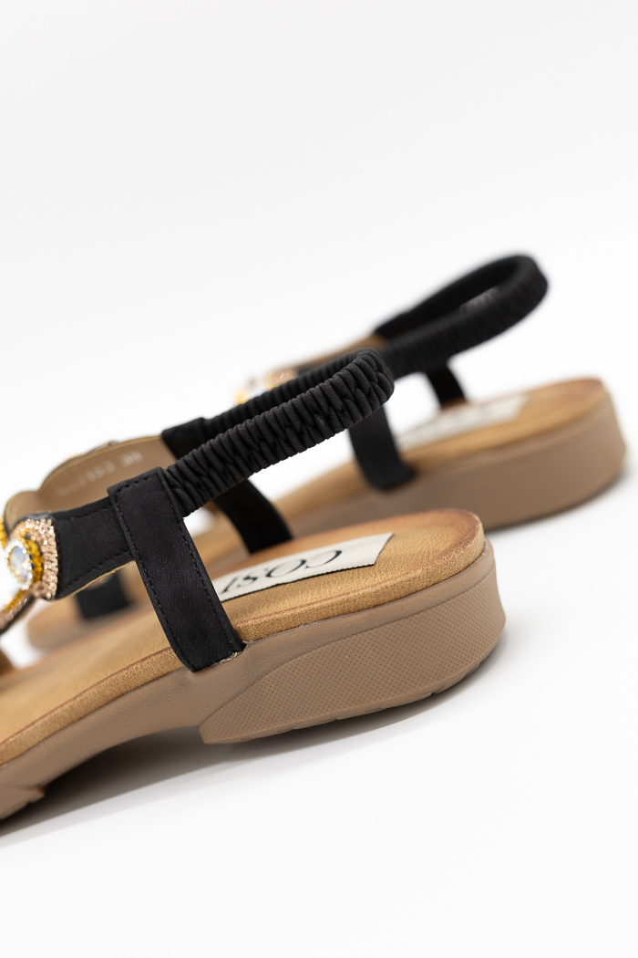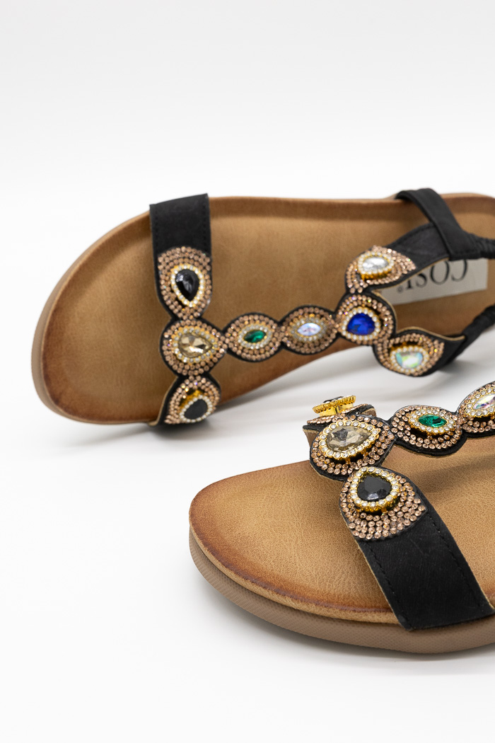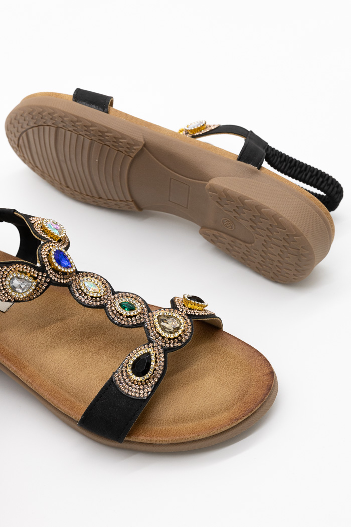 Σανδάλια (super soft) με διακοσμητικές πέτρες και strass 023153-Μαύρο