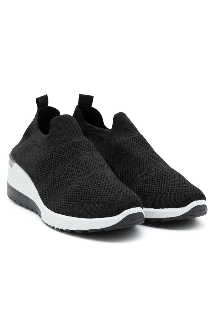 Sneakers κάλτσα πλατφόρμα με μεταλλική λεπτομέρεια στο τακούνι-Μαύρο