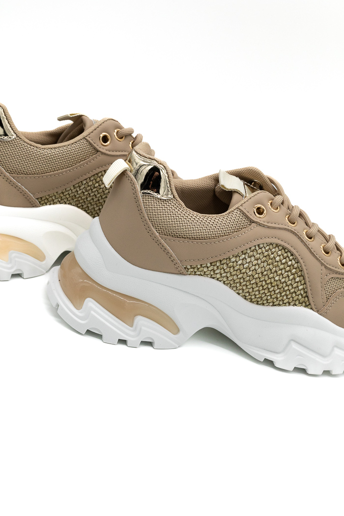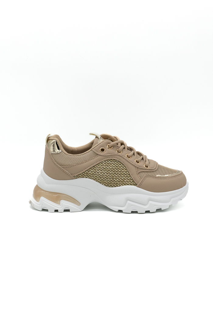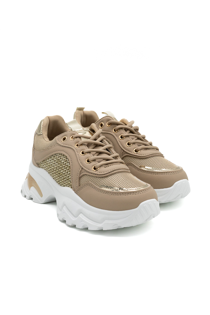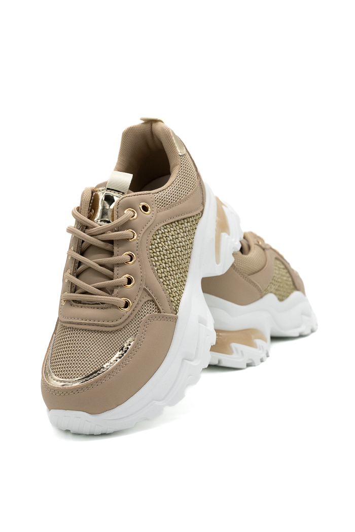 • Sneakers με chunky σόλα σε συνδυασμό υλικών-Μπεζ
