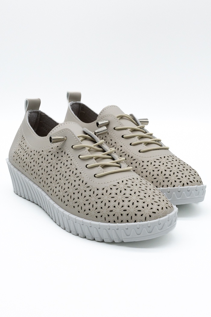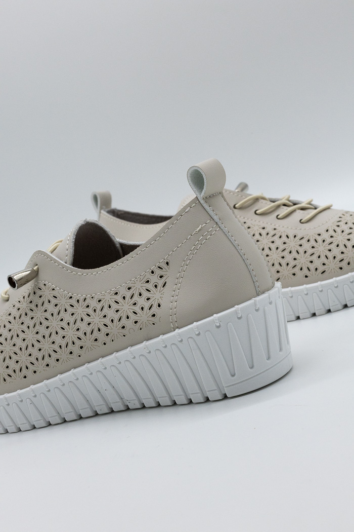Sneakers με διάτρητο σχέδιο και διακοσμητικά κορδόνια 5710-3 Μπέζ