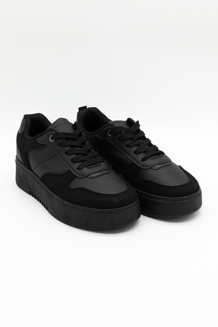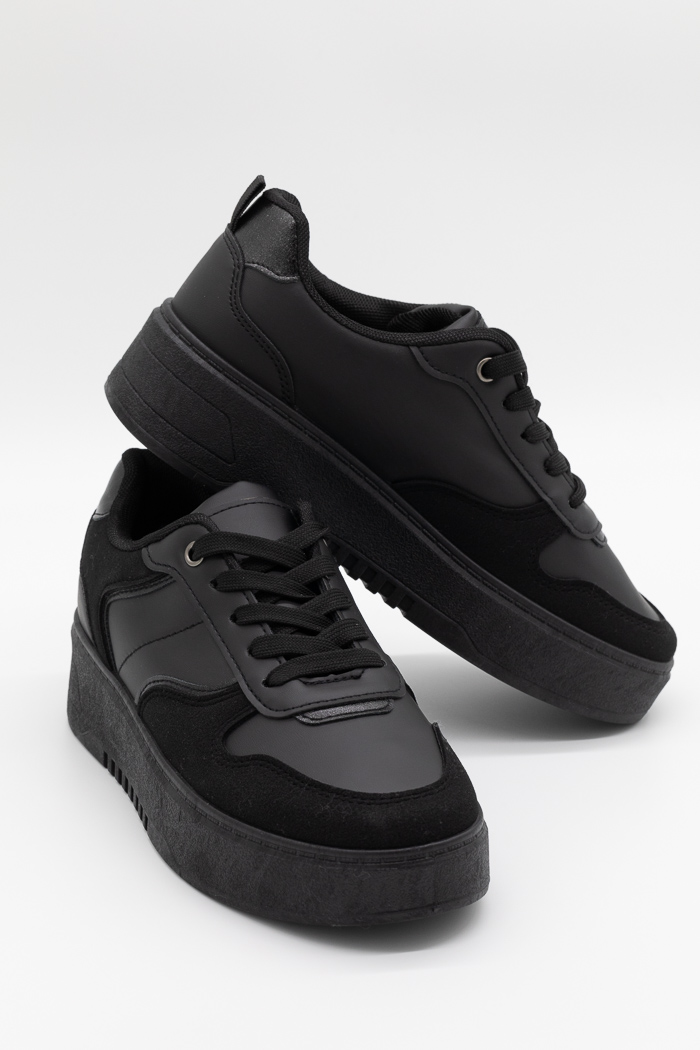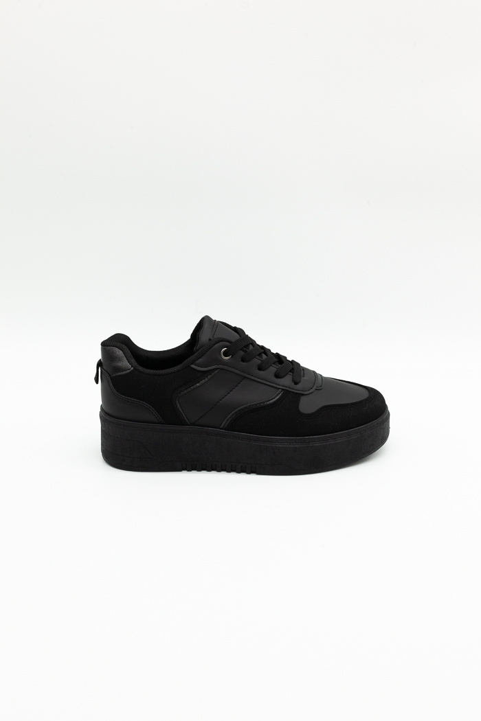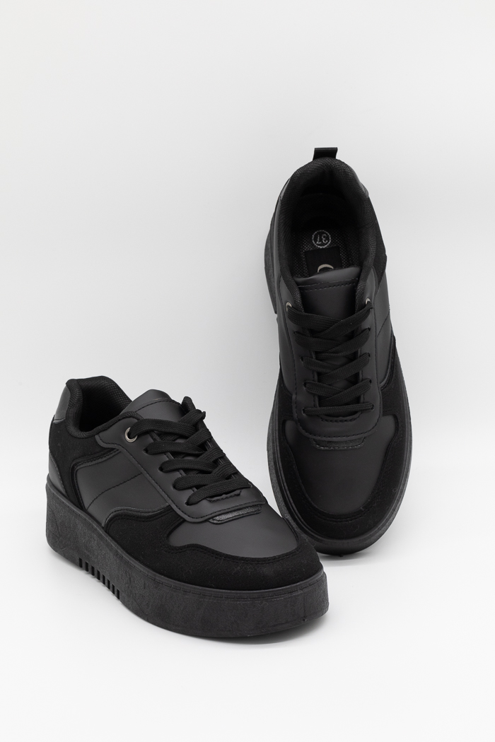Sneakers με διπλή σόλα σε συνδυασμό υλικών-Μαύρο