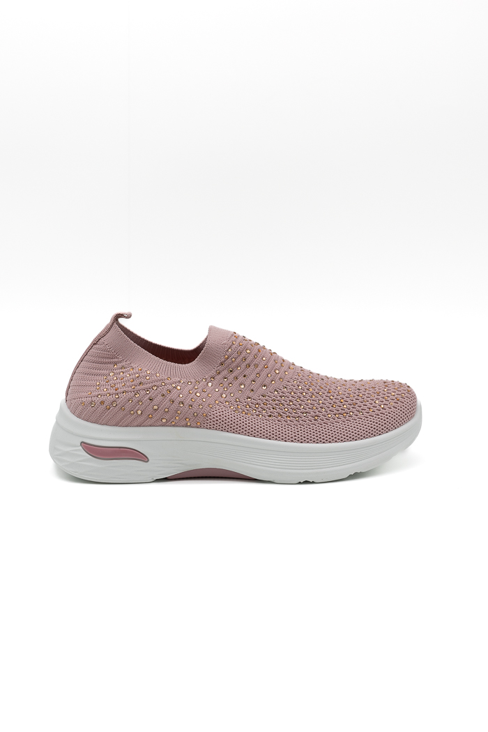 Sneakers τύπου κάλτσα με strass και μαλακό πάτο Β82-Ροζ
