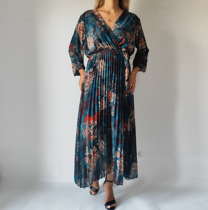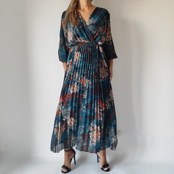 Αρχική σελίδα Shop Γυναικεία Ρούχα Φορέματα Φόρεμα maxi πλισέ 16191-Πετρόλ