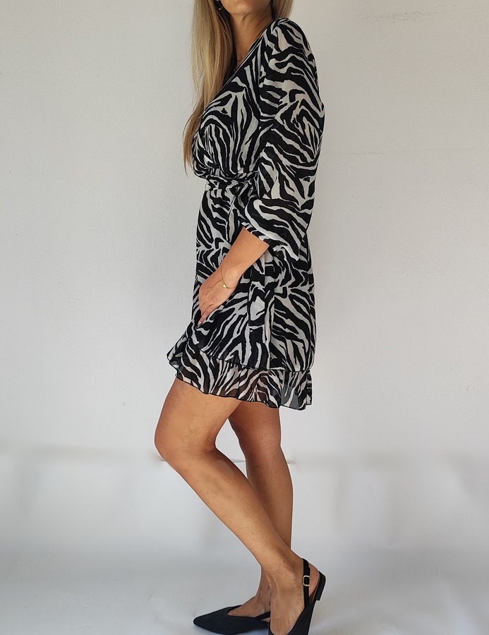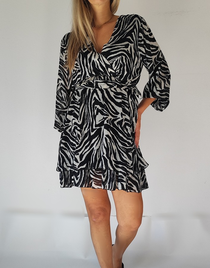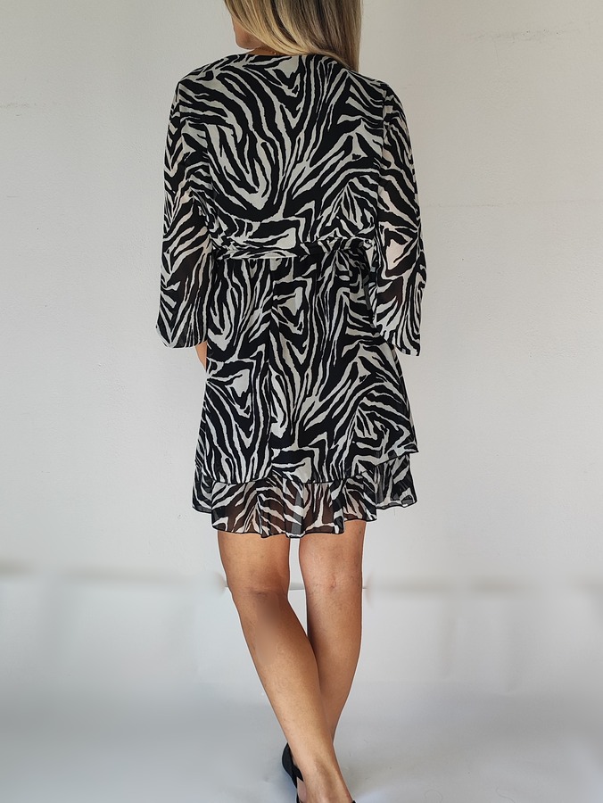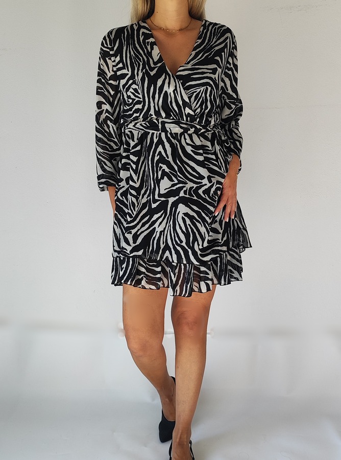Φόρεμα με βολάν Zebra print 3046 -Μαύρο