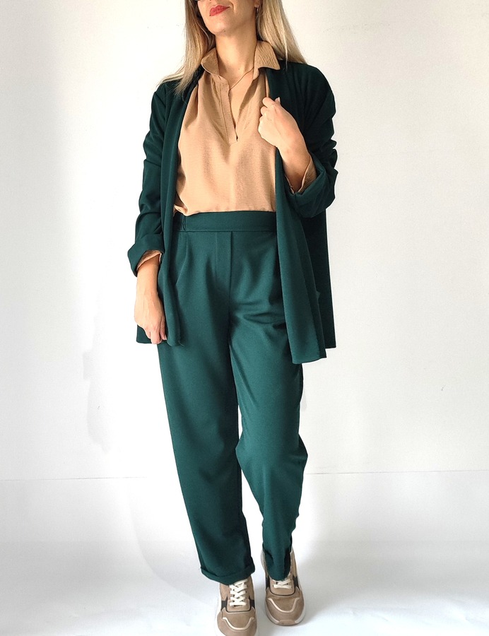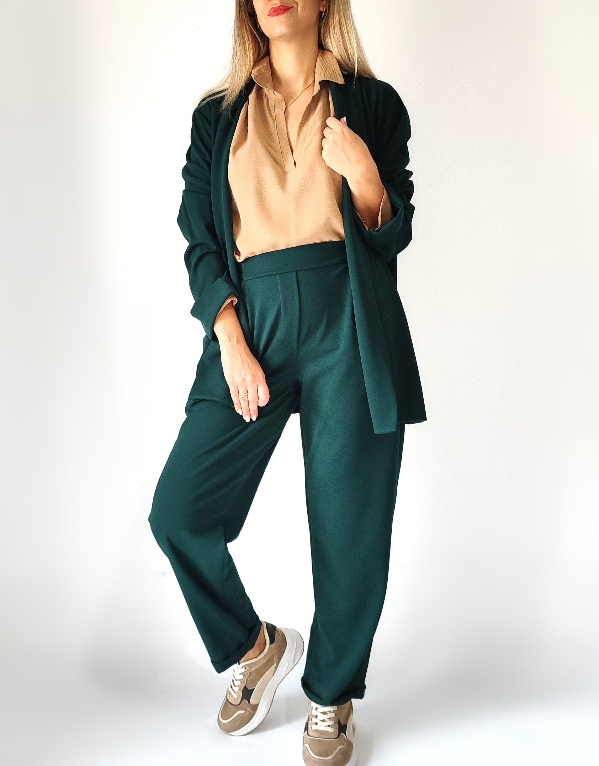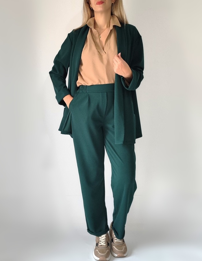 • Σετ κρεπ oversized σακάκι- παντελόνι 224 -Πράσινο