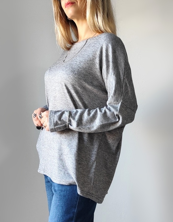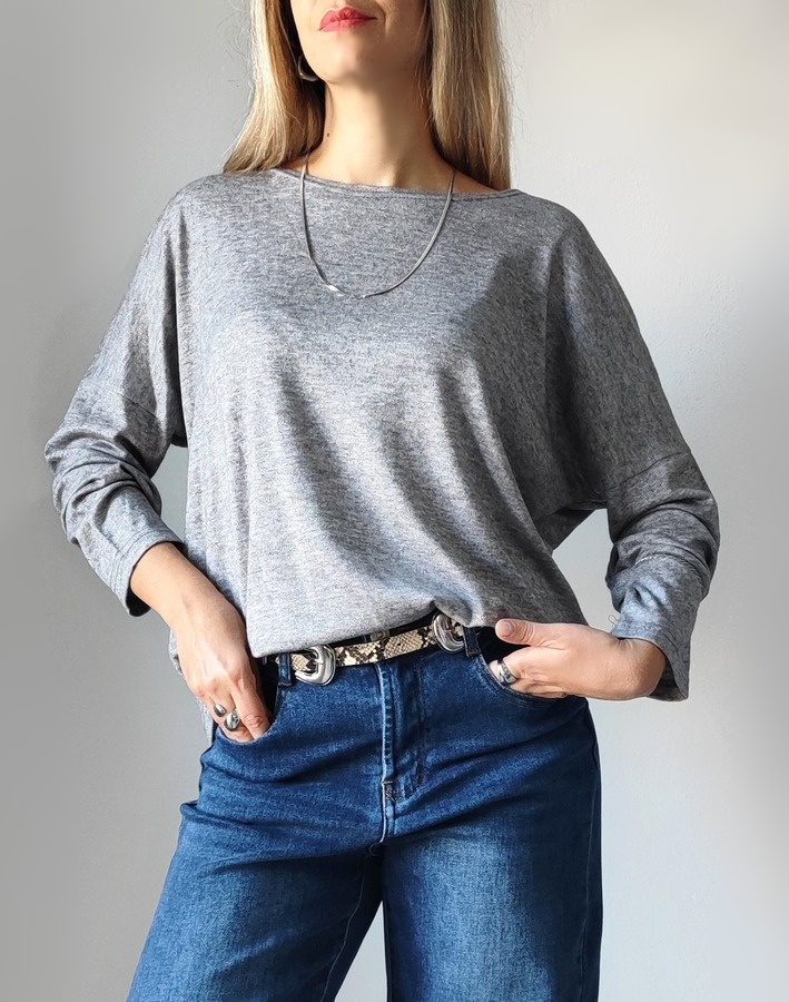 Μπλούζα μαλακή με boat neck λαιμόκοψη FL227- Γκρί