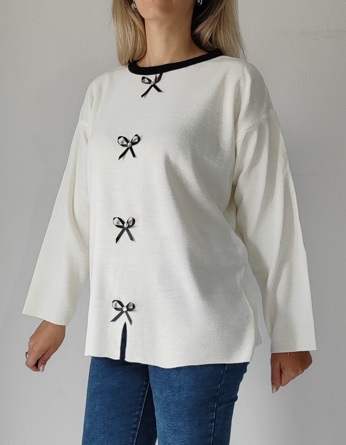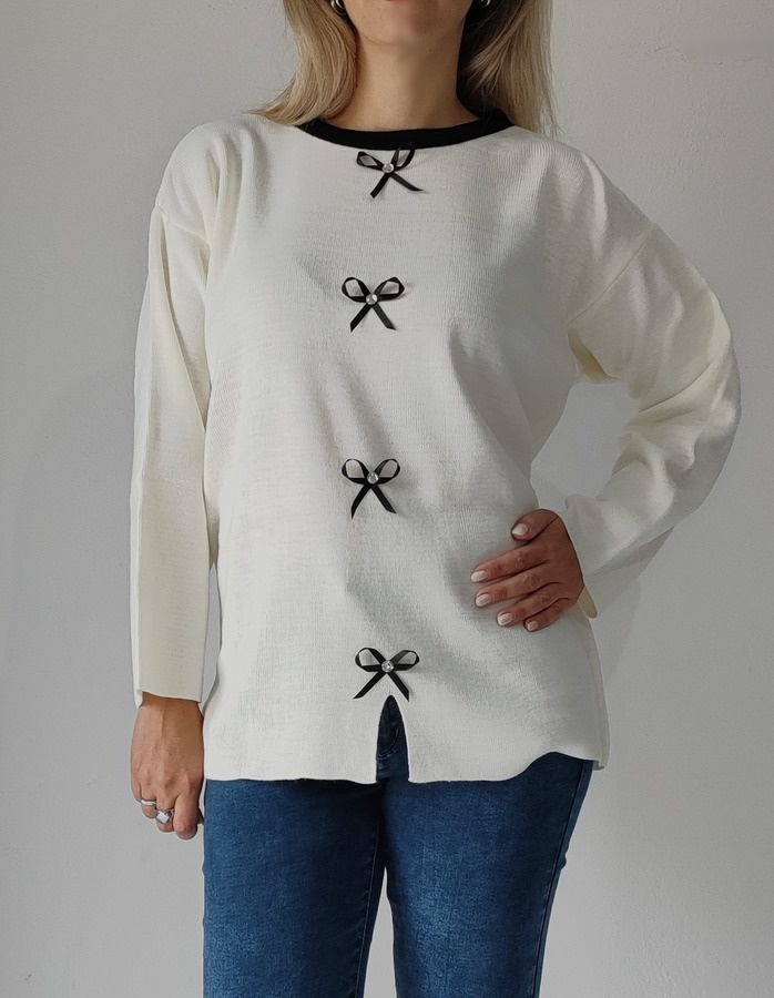 Αρχική σελίδα Shop Γυναικεία Ρούχα Πλεκτά Μπλούζα με φιογκάκια 8955- Άσπρο
