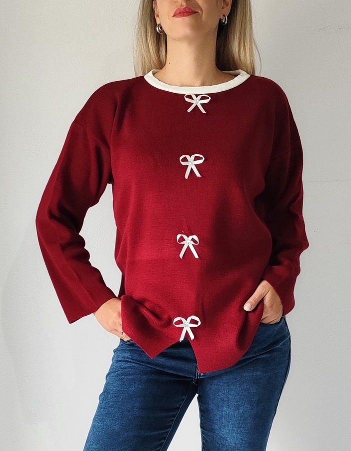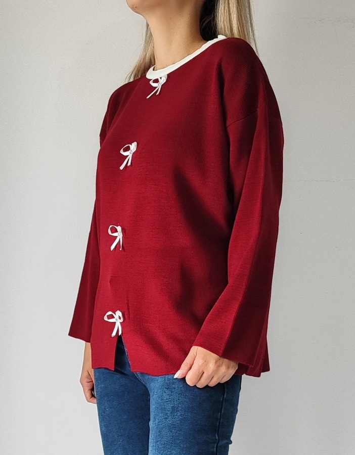 Αρχική σελίδα Shop Γυναικεία Ρούχα Πλεκτά Μπλούζα με φιογκάκια 8955- Μπορντώ