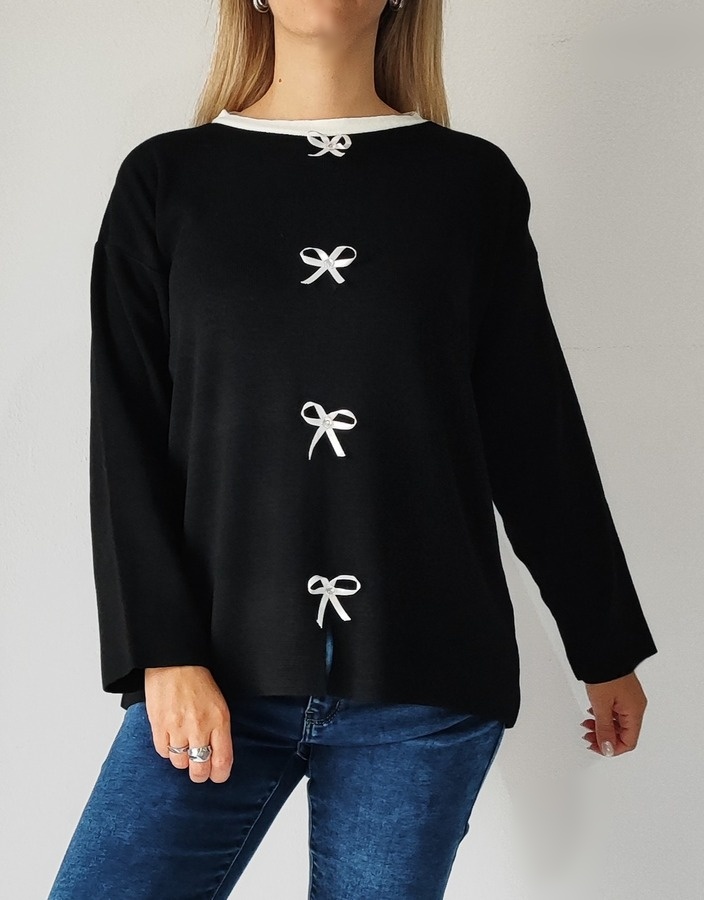 Μπλούζα με φιογκάκια 8955- Μαύρο