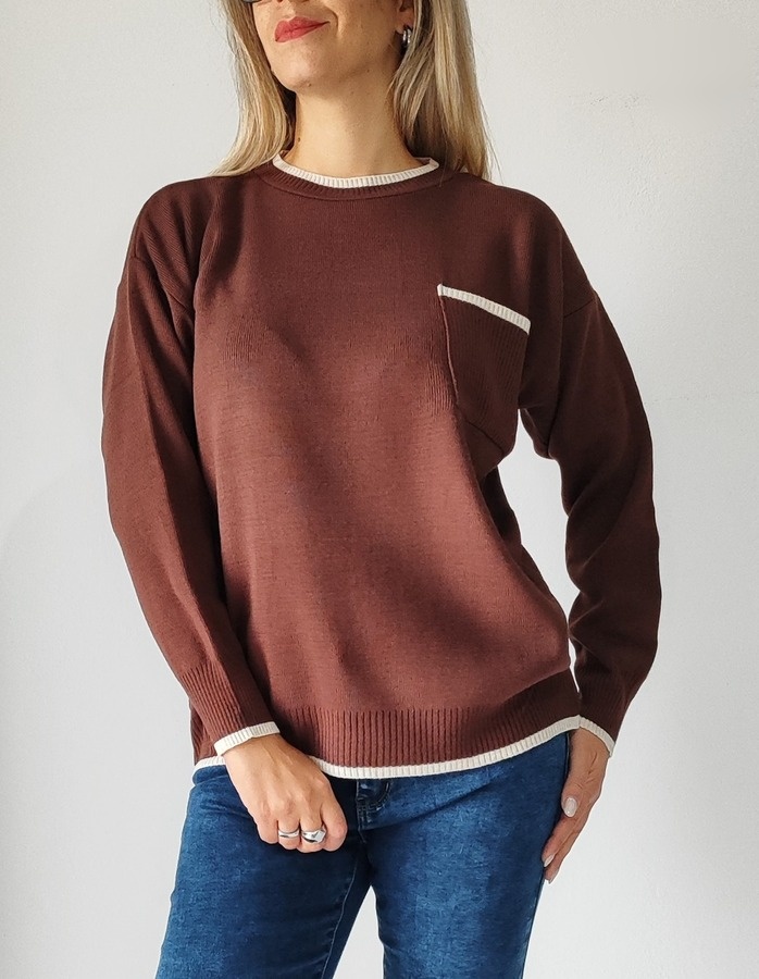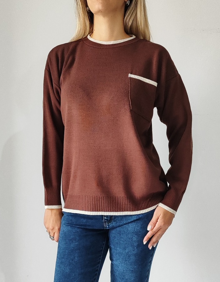 Μπλούζα με τσέπη 8963- Καφέ