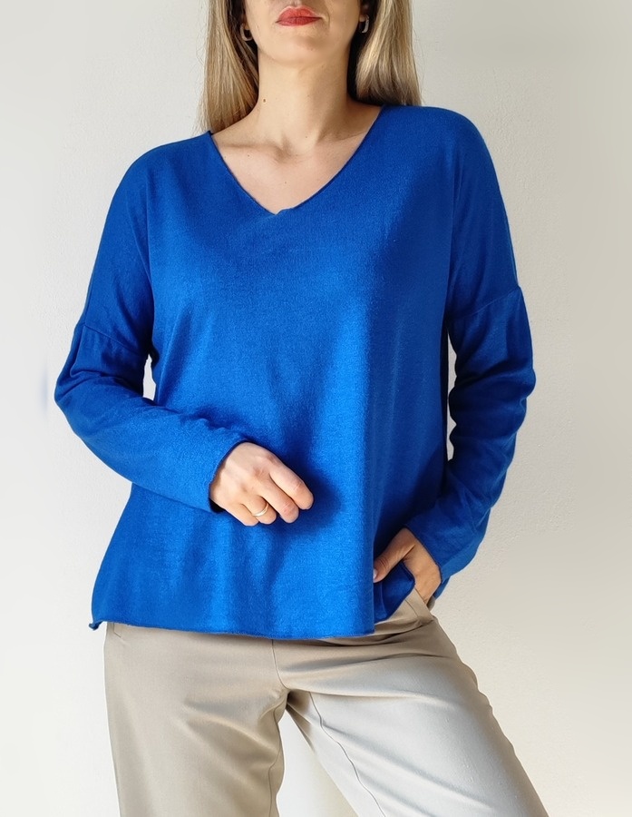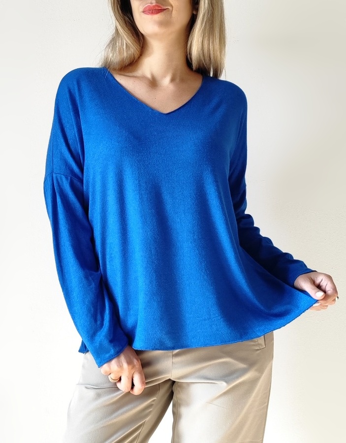 Μπλούζα με V λαιμόκοψη 1055- Μπλέ ρουά