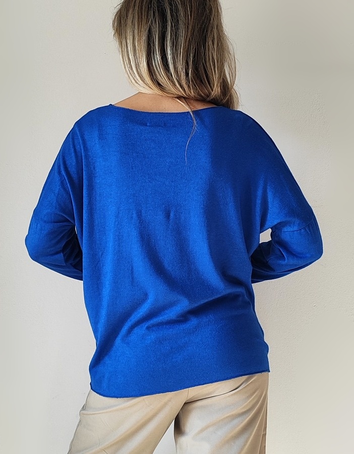 • Μπλούζα με V λαιμόκοψη 1055- Μπλέ ρουά