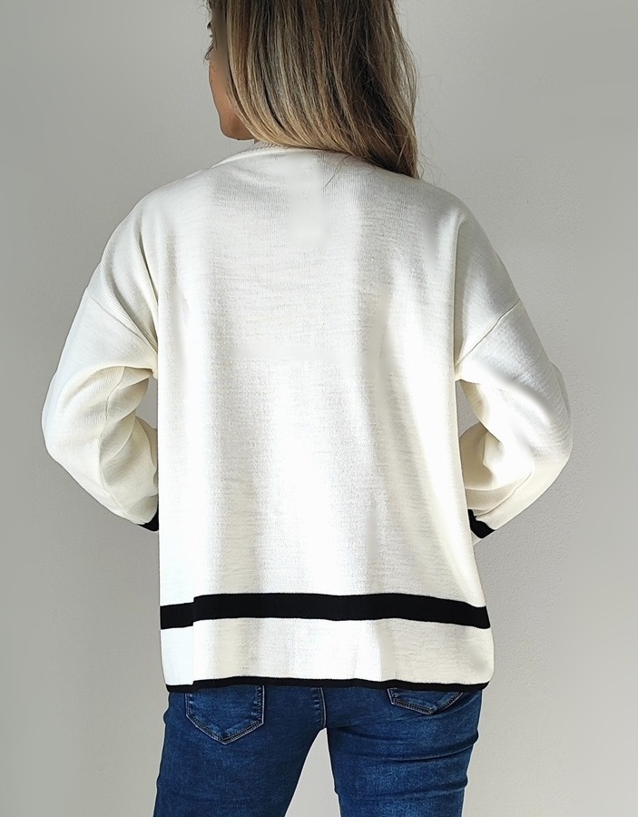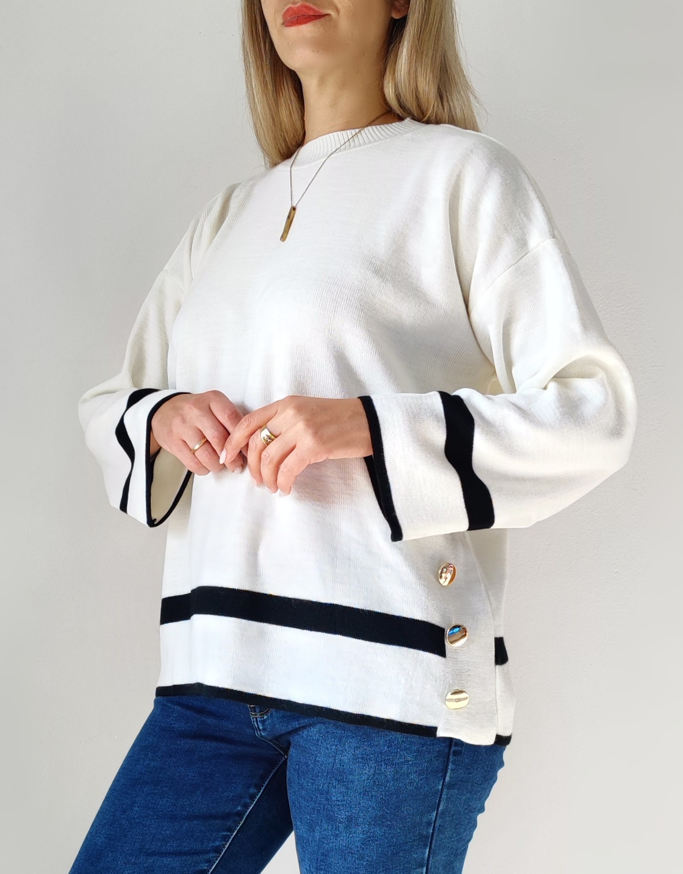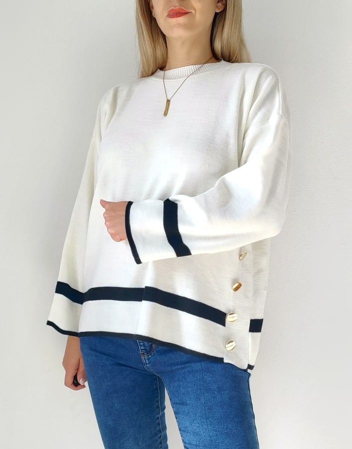 • Μπλούζα πλεκτή με κουμπιά στο πλάι και ρίγες 8962- Άσπρο