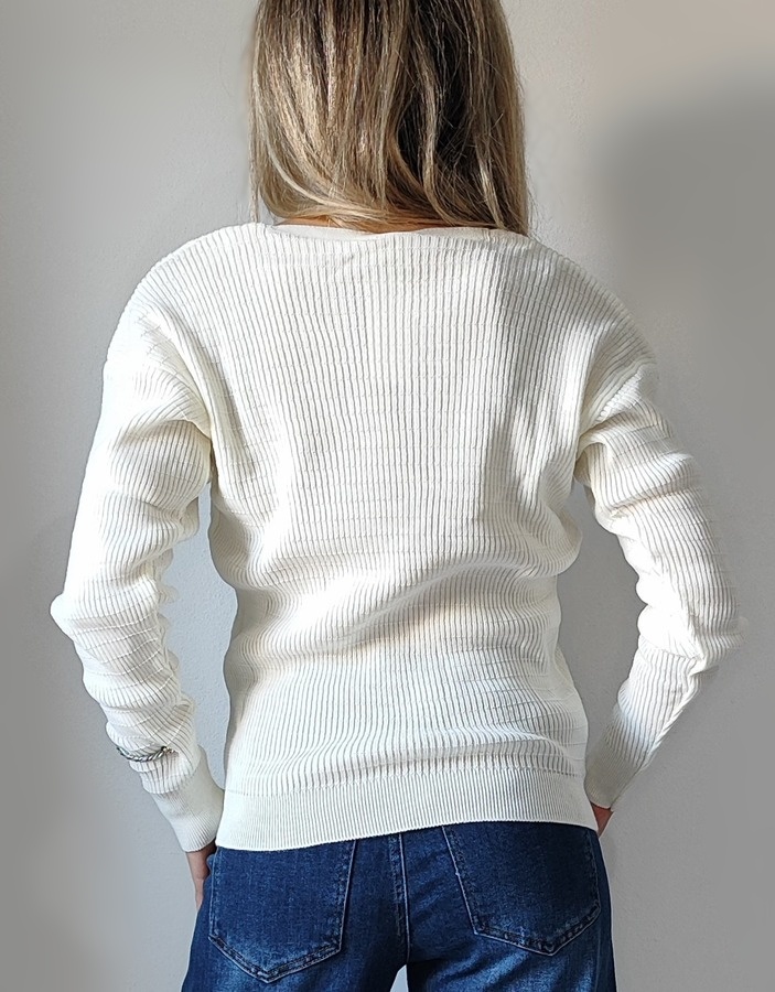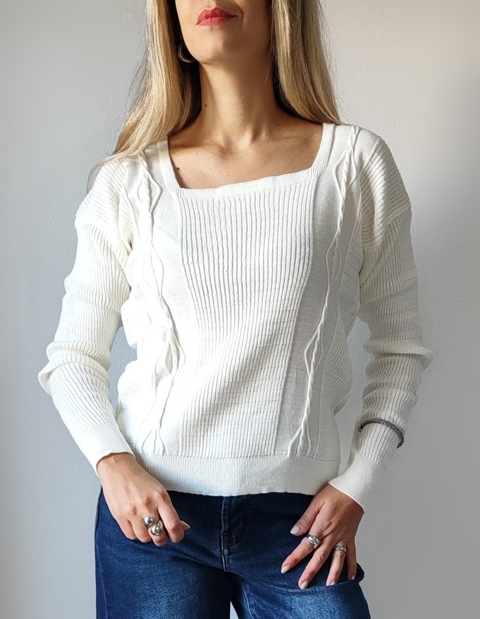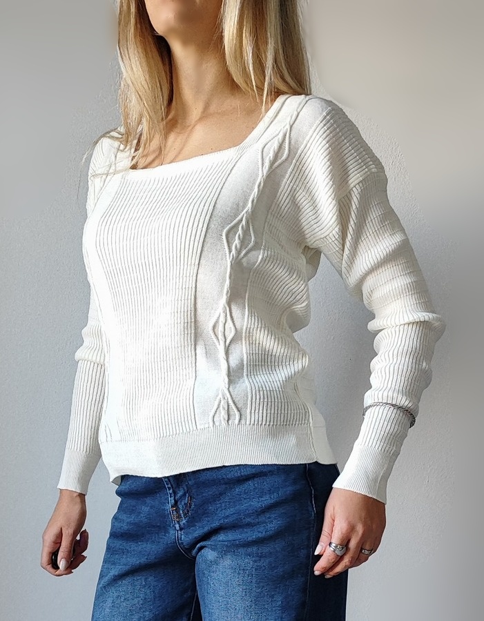Μπλούζα πλεκτή με τετράγωνη λαιμόκοψη 8653- Εκρού