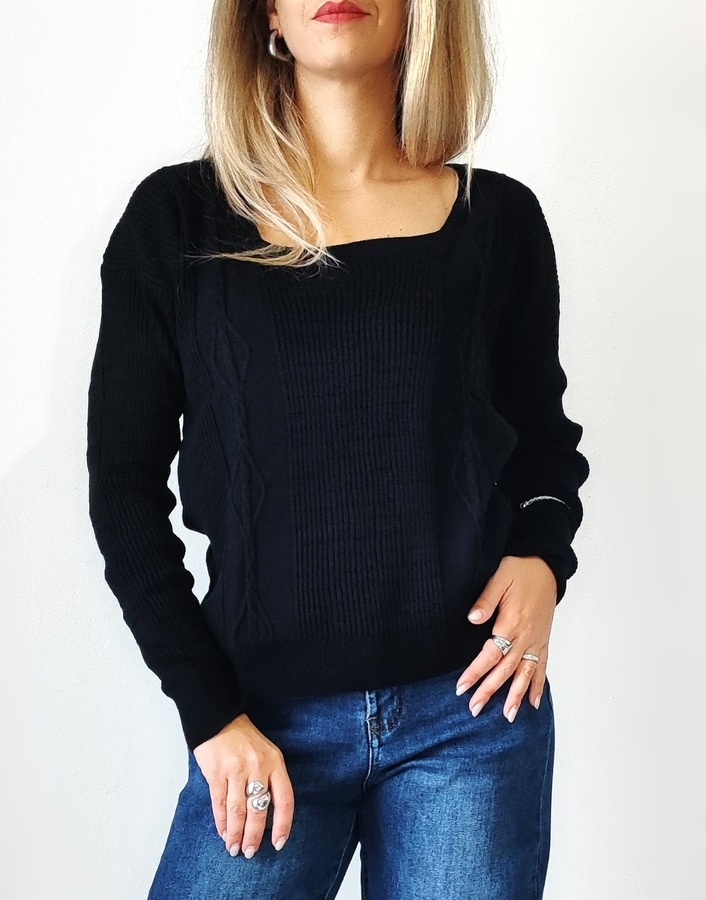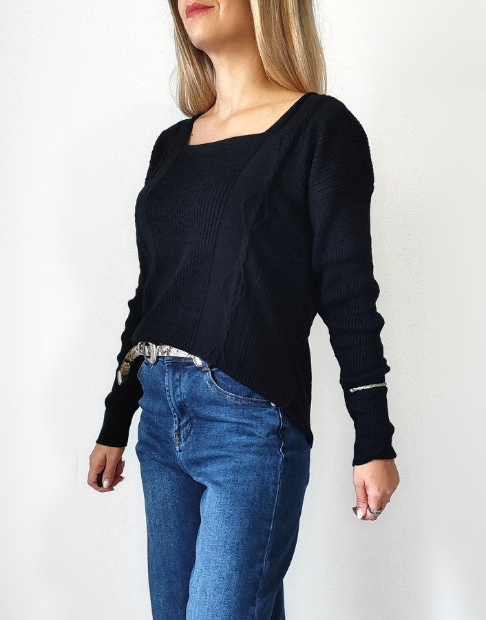 Μπλούζα πλεκτή με τετράγωνη λαιμόκοψη 8653- Μαύρο