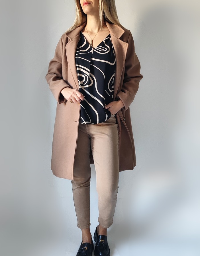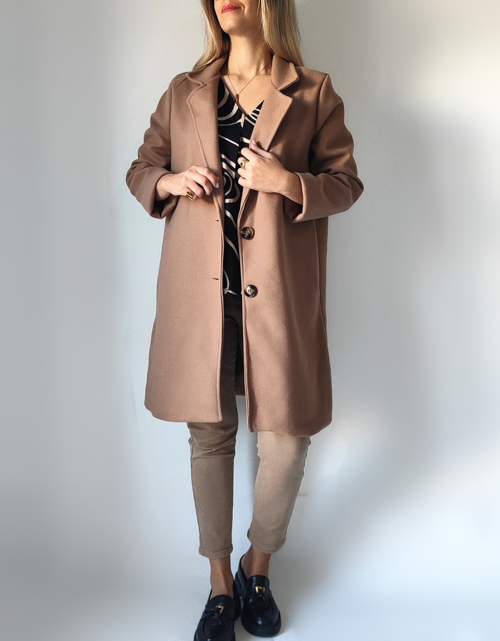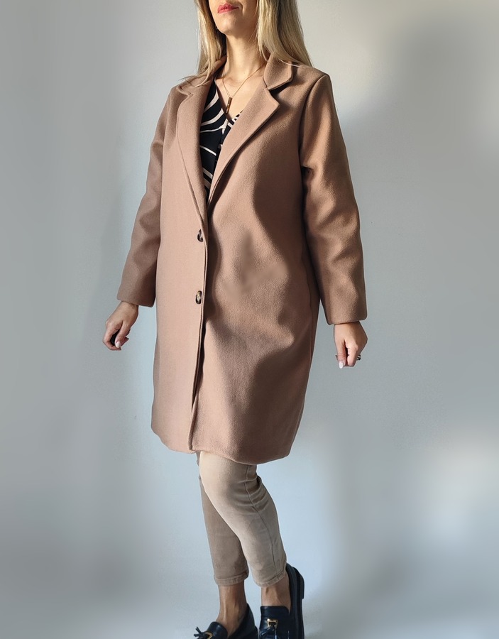 Παλτό με κουμπιά Basic 4046-Κάμελ