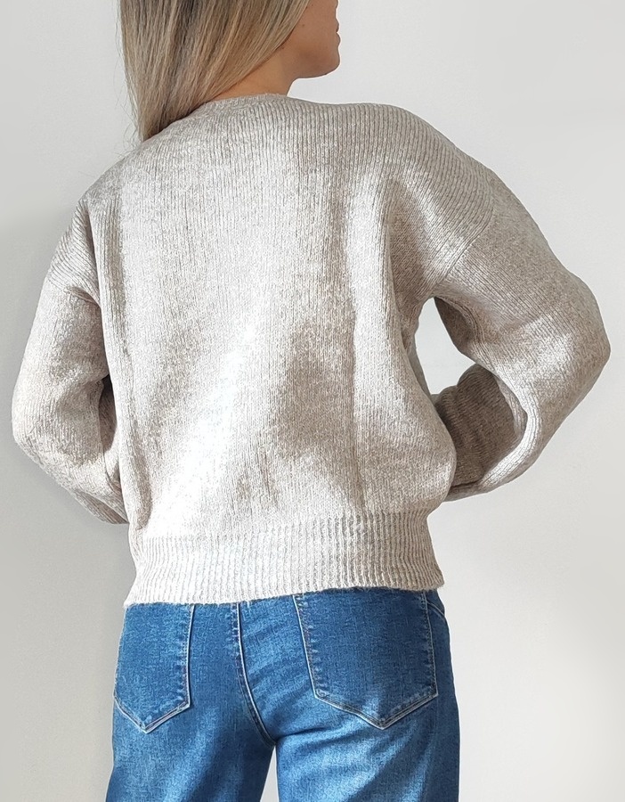 • Zακέτα πλεκτή λαιμόκοψη 8885- Εκρού