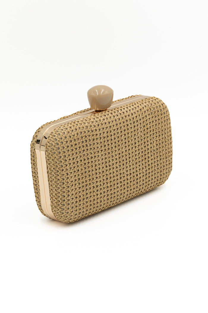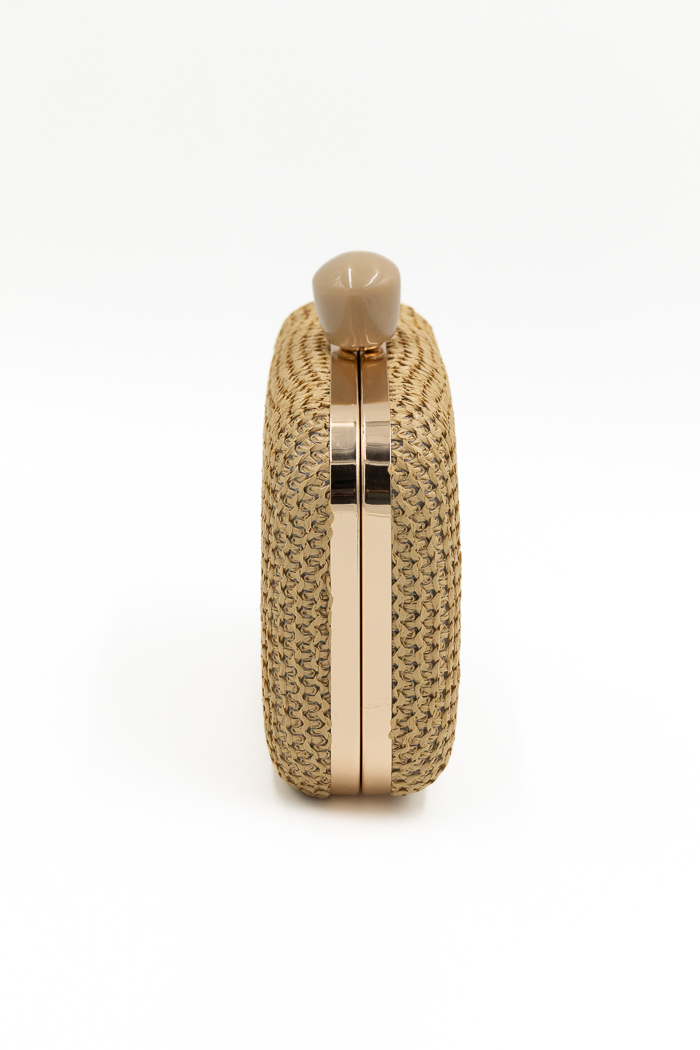 • Ψάθινη τσάντα clutch με κοκκάλινο κλιπ-Μπεζ