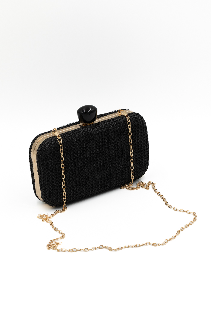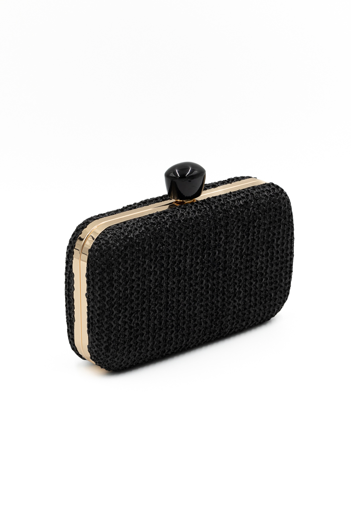 Αρχική σελίδα Shop Τσάντες Clutch τσαντάκια Ψάθινη τσάντα clutch με κοκκάλινο κλιπ-Μαύρο
