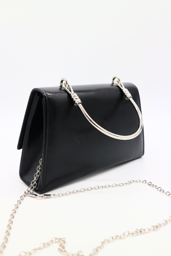 Τσάντα clutch με αλυσίδα και μεταλλική λαβή BG-018 Μαυρό