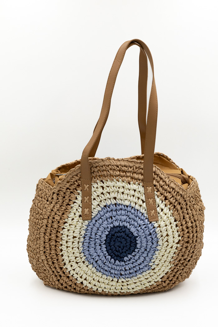 Αρχική σελίδα Shop Τσάντες Τσάντες Ψάθινες Ψάθινη τσάντα χειρός με σχέδιο μάτι-Μπεζ