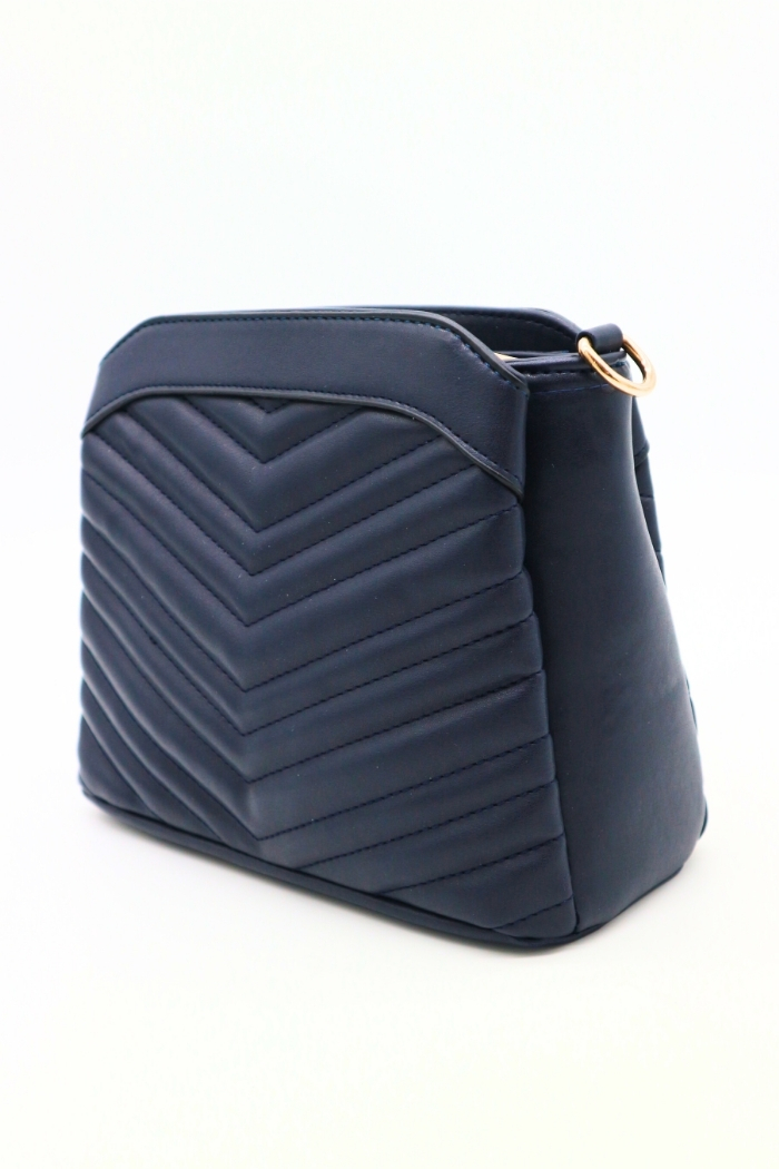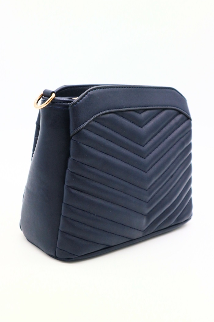 Τσάντα χειρός με καπιτονέ σχέδιο σε μοτίβο “V”. Κομψή και πρακτική για καθημερινή χρήση.